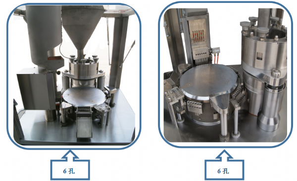 5、配備粉體物料充填機(jī)構(gòu),使粉體物料經(jīng)過膠囊填充料倉裝置連續(xù)均勻強(qiáng)制下料至膠囊填充區(qū);